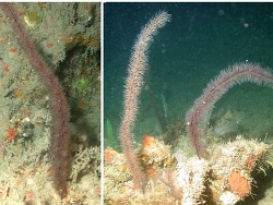 Sea fans or also often called gorgonians are colonial marine animal forming erect, flattened, branching colonies in tropical and subtropical waters. They have a central internal skeleton, composed of a flexible, horny substance called „gorgonin“, supports all branches of the colony, and the living tissues form a layer over its entire surface. Colonies may be several feet high and are most often colorful, with purples, reds, and yellows predominating. Cylindrical sessile forms—that grow together in a flat, fanlike pattern. The individuals, or polyps, have six or eight feathery tentacles and feed on plankton organisms.