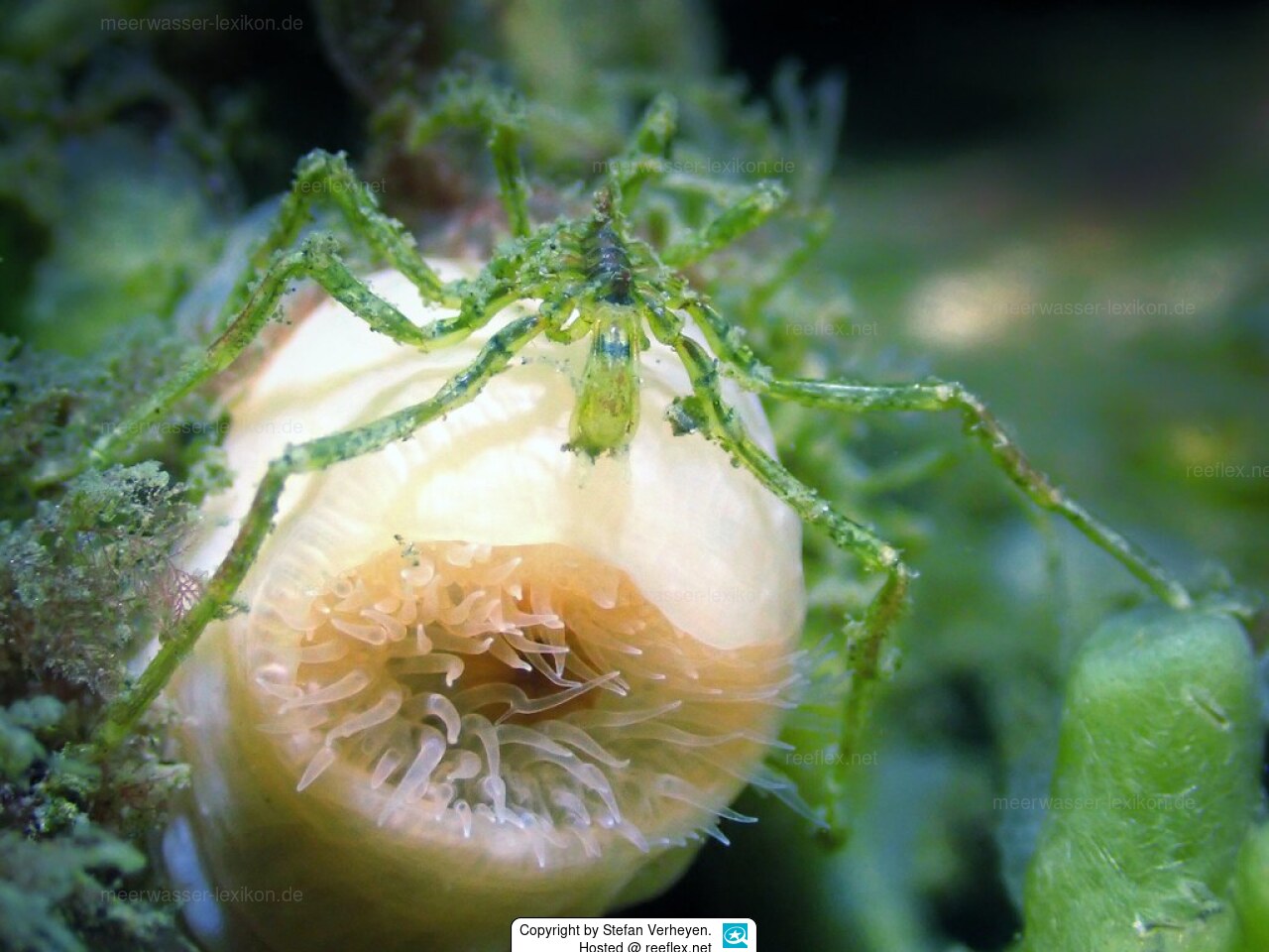The photo shows a sea spider that is a predator on zoanthid corals. This species feeds on zoanthids and is a zoanthid pests.